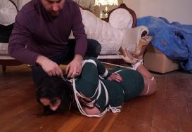 Busty Girl Next Door Hogtied, Elbows Tied, Crotch Roped her Very Tightly
