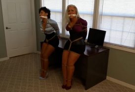 Enchantress Sahrye stretches MILF Lesbian Lover Sandra Silvers wide for a Spread Eagle Bondage Orgasm