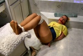 Encased in Pantyhose Bound in White Rope Faythful Struggling