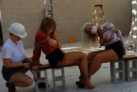Female bondage, Buxom MILF Secretary and LadyBoss Bound and Orgasmed On Construction Site by Lesbian Laborer