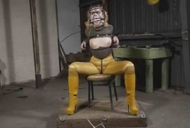Khristall vs. A Rubber Struggle, frogtied and gas masked, bondagejunkies