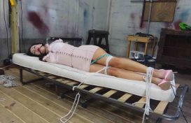 Willow Lansky – Submissive wench tied down to a cot for intense machine fucking, jimhunterslair