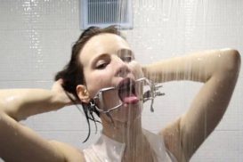 Its shower time with the mouth spreader, crazy wide gagged mouth video