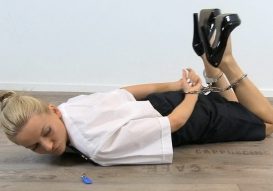 Cuffed Tina Kay Struggling on the Floor