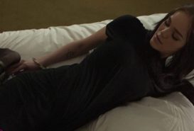 Tina is cuffed to the bed and struggles to get out