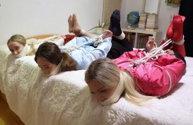 Bondage lesson: College student Emily hogtied and gagged, bondish