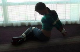 Hogtied Elizabeth Andrews in Boots, Lots of Gag Talk