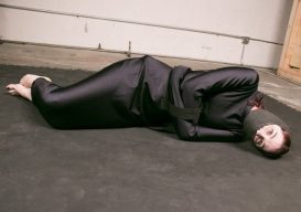 Krystas Solution tied and dressed Andres in Straight Jacket