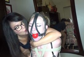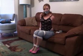 [Girl Next Door Bondage] Bound and gagged captive escapes out the back door [Lana Lane, rope bondage, tied]