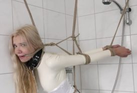 Vanessa in a Tight Latex Suit Strict Bound, Cuffed and Rope Gagged – Gaggeddreams