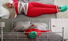 2 MILFs Sandra Silvers and Caroline Pierce Bound on the Bed for Satin Pyjama Party Foot Tickle Torment