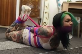 Sexy Wanilianna in a tight hogtie, lovebondagettes