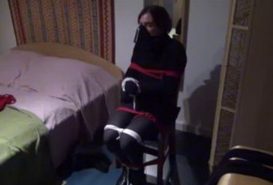 Male bondage, chairtied, shoegagged – crossdresser home invasion bondage