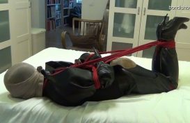 Bondishboys Steve hogtied with scarfes, male bondage