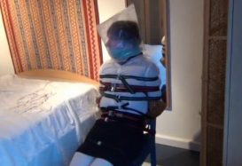 Jon strapped to a chair and bagged, male bondage video