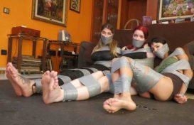 Mayla is framed and tied up by Robert in a tape-hogtie POV, Mayla Production
