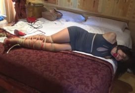 Milf Gigi bound and gagged, My nosy neighbor was taught a lesson with some speaker wire