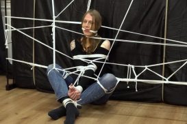 First lingerie bondage with Mitzi Lamore – Necktied in the studio