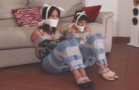 Vivica Lase – Blonde Hiker Lost the Trail and Stumbles her way into Trouble Hogtied and Gagged in the Woods