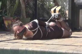 Natalie Charm – Strict strappado with her leather bound tits stretched to her bound knees, jimhunterslair