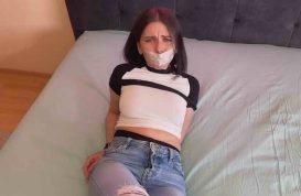 Mila Amora and Jamie – taped and ball gagged in nylons by the estate agent