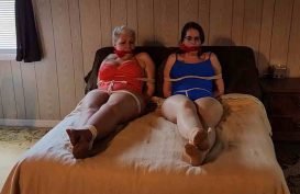 Katie Cooper dominated by Mila Amora – ball gag, penis gag, lesbian, nylons, fuck, Mila Amora Bondage