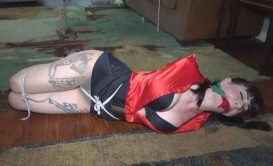 Nyxon – Busty girl bound & hogtied in tight shiny spandex, jimhunterslair