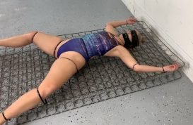 Ayla Aysel spreadeagle metal bondage, swimwearbondage