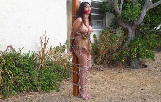 The Mistress teases the male slave tied to a tree and leaves him alone, TrueTiedTales