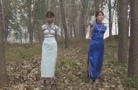 Karin Sin and JJ Plush – 2 busty broads saran wrapped to trees in the snow, borntobebound