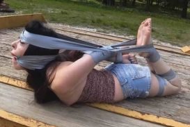 Terra Mizu bound outside in her tiny bikini, MILF GiGi’s Bondage Fantasies