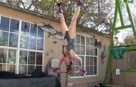 Fayth On Fire Self Hogtie w Leather Cuffs Outside, faythonfire