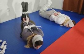 Terra Mizu and Megan Jones – Pajamas and Tape Bondage, Cinched and Secured
