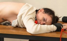 Lolly Gagg – Topless Bondage and Mouth Filling Gags, Cinched and Secured