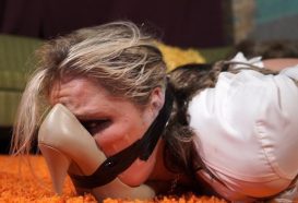 Two Clips, Chairtied, Harnessed Ball Gags Moutstuffed, Cleavegagged and the Gags Secured