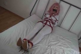 Pinkieneko – Bound in Pink Shiny Spandex Bodysuit, Pinkieneko Bondage Store