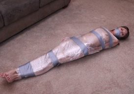 Cali Logan Wrapped in Plastic Wrap & Duct Taped