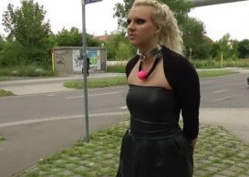 Gagged Ruby Angel Handcuffed to Pole in Public