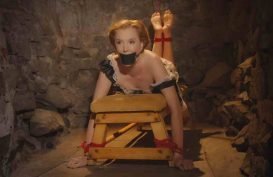 Ariel Anderssen, Lucy Lauren and Zoe Page – Bastinado in the stocks for Ariel and Lucy, restrainedelegance
