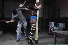 Riley Jane – The bitch was left with her head tied to a post in a knee point hogtie, borntobebound