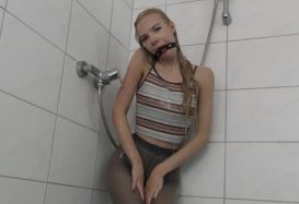Sandra Silvers Hogtied, Toe tied, Hair tied, Ring Gagged Buxom MILF Performs POV Oral Sex on Long Legged Lesbian Lover