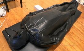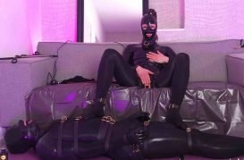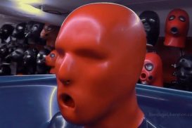 Teased in a Box, Rubber-clad Elise Locks and Teases her Rubber Gimp in a Bondage Box, BondageLiberation