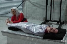 MILF Mummification Machine Covers Caroline Pierce in Clear Plastic for Test Wrap Part 2, sandrasilvers