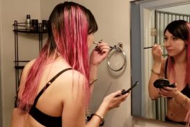 [Pink-Cuffs] Scarlett Rose is handcuffed behind the back while getting her makeup done!