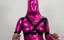 Ms Whitney Morgan Armbinder shiny bondage, swimwearbondage