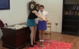 Carissa Montgomery and Elizabeth Andrews: Office break in, Kneeling Hogtie – OfficePerils