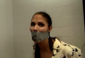 Silver Tape Gag Adara Jordin Bathroom Ambush Hogtie