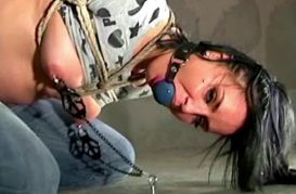Ball gagged, Tit-grabbed Nicole in hard bondage
