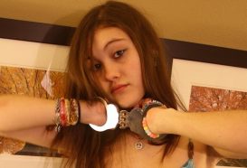 Cute teen Stephanie – locked in hinged cuffs