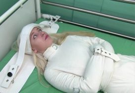 Adara Jordan Perverted parole officer takes the parolee home for some fun..again, metal bondage and straitjacket